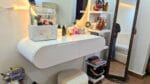 Integrated Lighting: The accompanying mirror features built-in backlights, providing perfect illumination for your grooming routine.